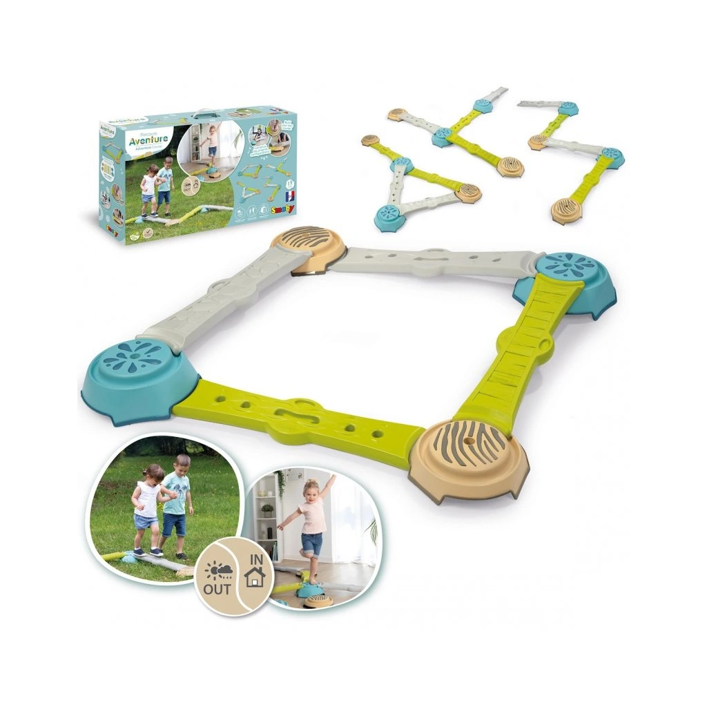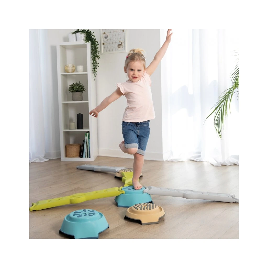 Balanční dráha obsahuje 4 zásuvný plastové vahadela, která lze použít oboustranně. Jednoduchý systém vkládání jednotlivých částí dohromady, umožňuje stavět balanční dráhy libovolným způsobem a vytvářet tak různě složité úrovně.