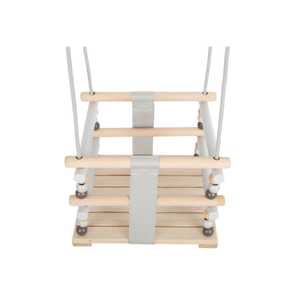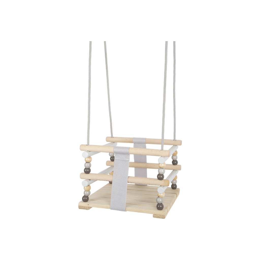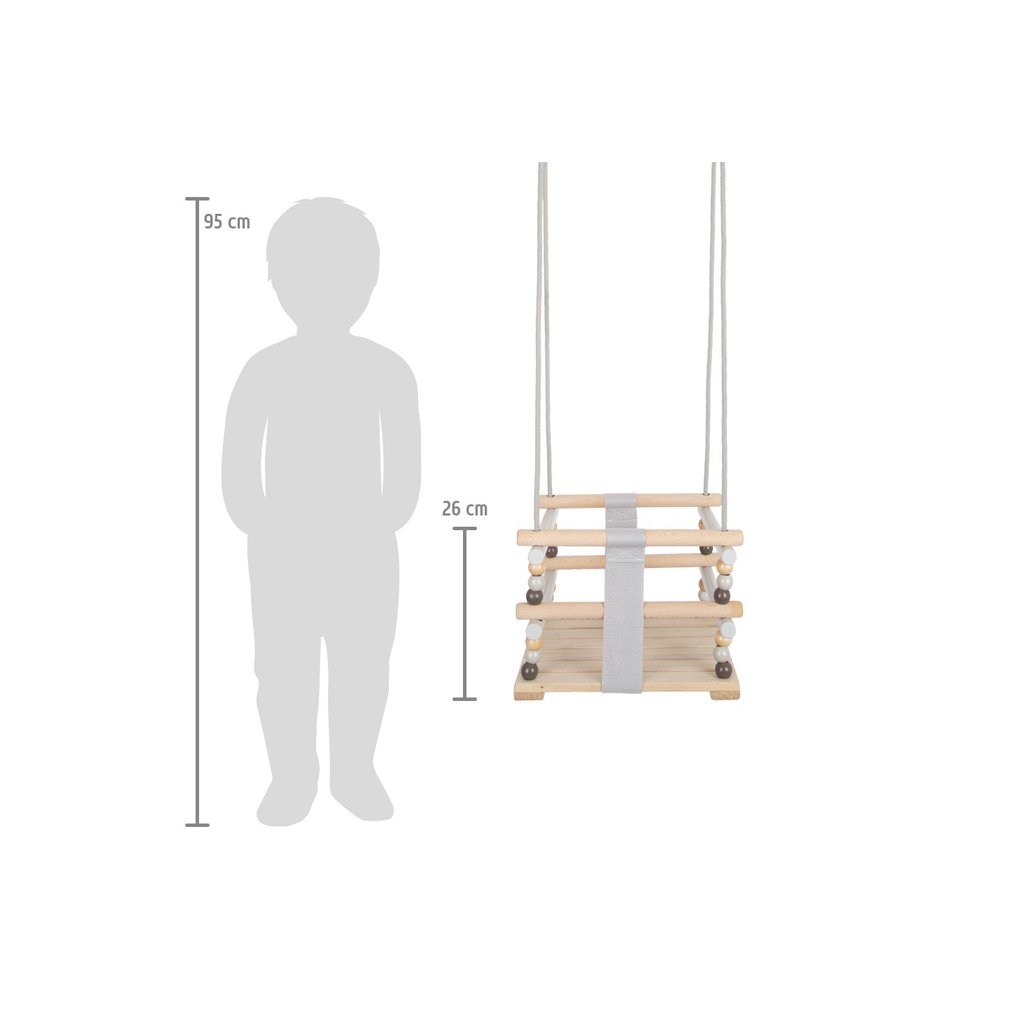 Dětská dřevená závěsná houpačka pro nejmenší. Vysoká opěra zad Vám umožní pohoupat i malé dítě. Jednotlivá patra jsou zřetelně oddělena korálky v šedé a hnědé barvě. Rozměr sedadla 30 x 30 cm, výškově nastavitelná lana. Dodávka obsahuje: houpačku, nastavitelná lana v délce 1,8 metru s lanovými zámky, kovové kroužky k zavěšení, návod.Doplňkové parametry