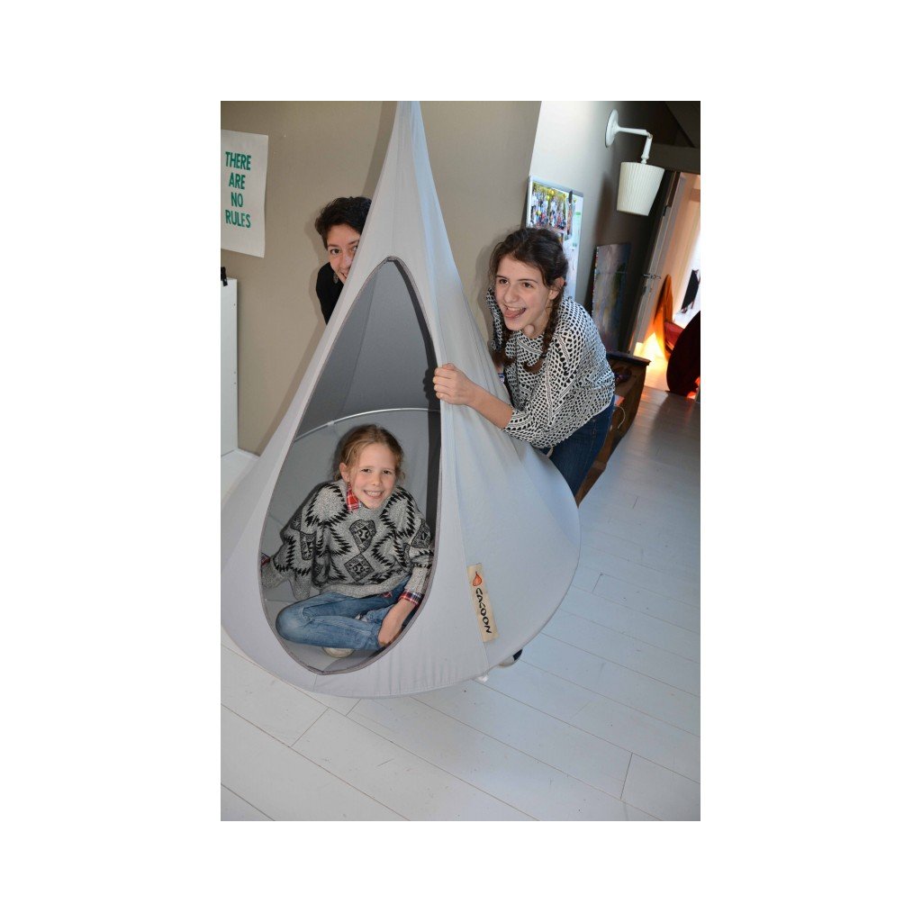 Nejmenší závěsnou houpačkou z řady Cacoon o průměru O1.2m ocení především vaše děti. Díky menšímu rozměru nezabere v dětském pokoji příliš mnoho prostoru a zároveň nabízí maximální množství potěšení a zábavy i venku na zahradě. Děti si budou užívat své pohodlí a nové zážitky ze závěsného domku, který nikdy nezevšední. Houpačka hnízdo Cacoon je vyroben tak, aby vydržel a odolal i při dětských hrách, je rychle skládatelný, snadno přenosný a dá se zavěsit kamkoli.