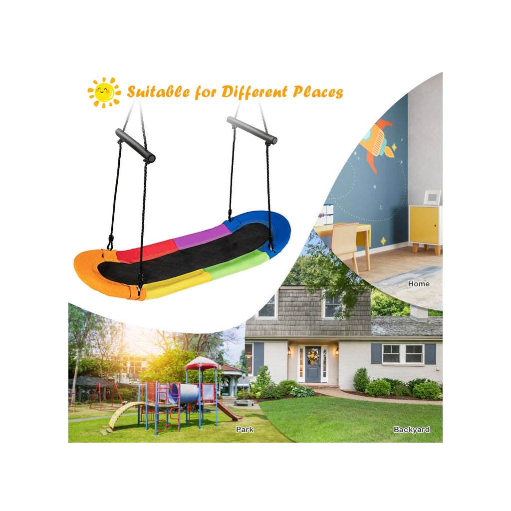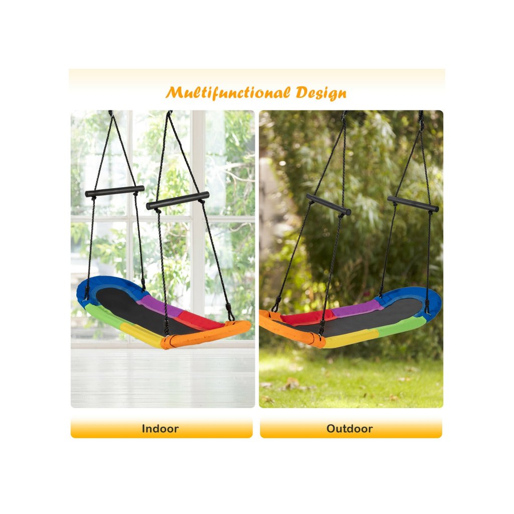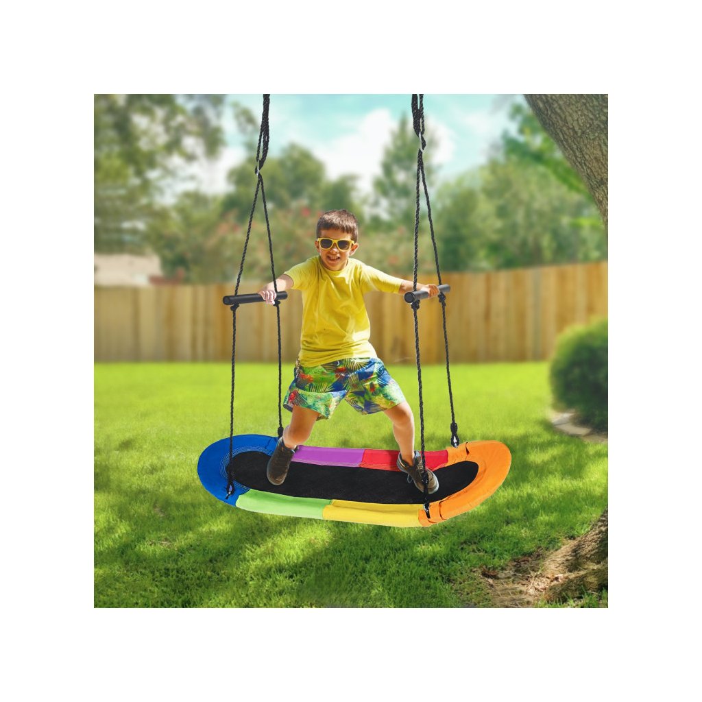 Síťovaná struktura uprostřed a pěnová podložka, která obklopuje sedák houpačky, zajišťují pohodlné sezení. Kromě toho můžete naši surfařskou houpačku zavěsit uvnitř i venku, například na větev, na terase nebo na zahradě.