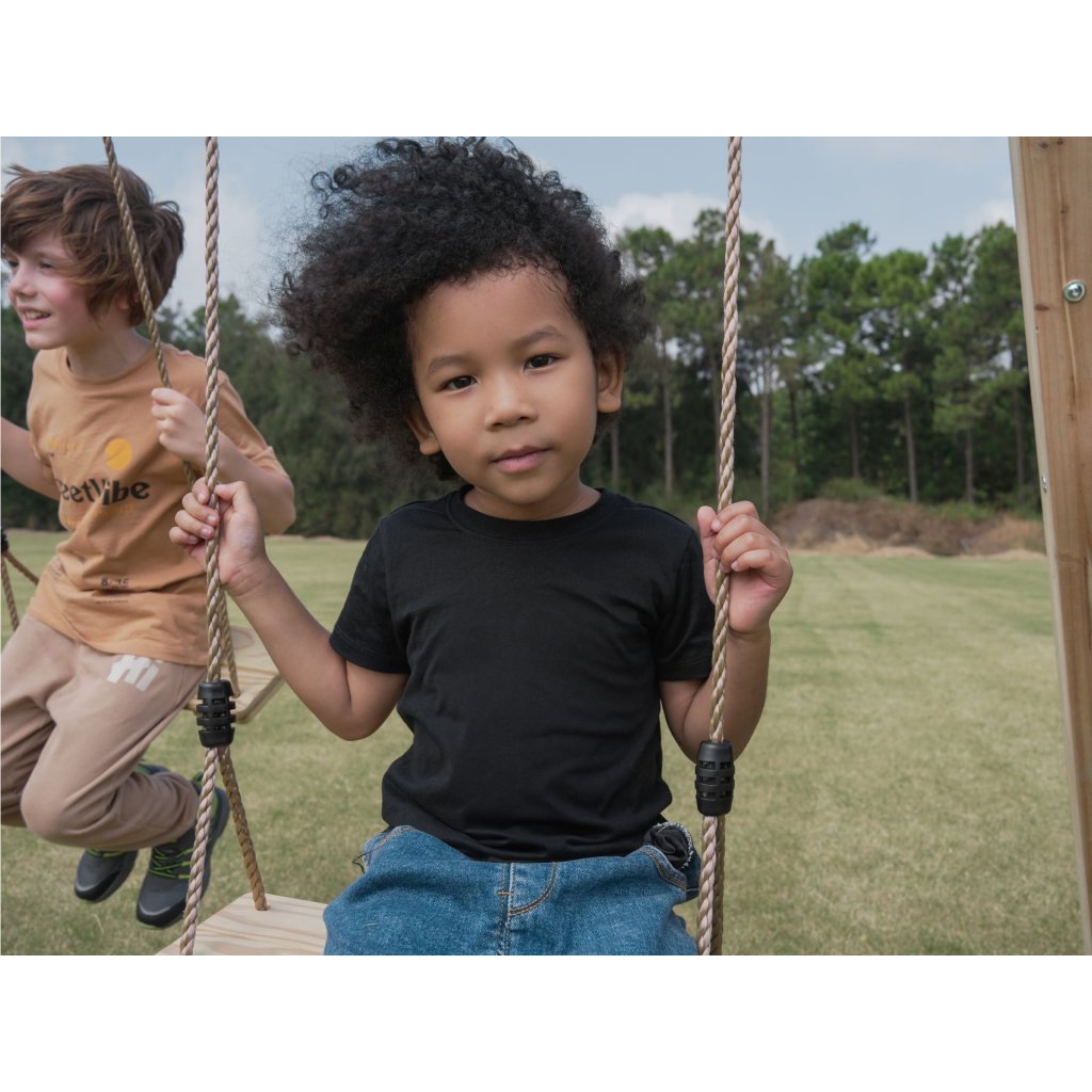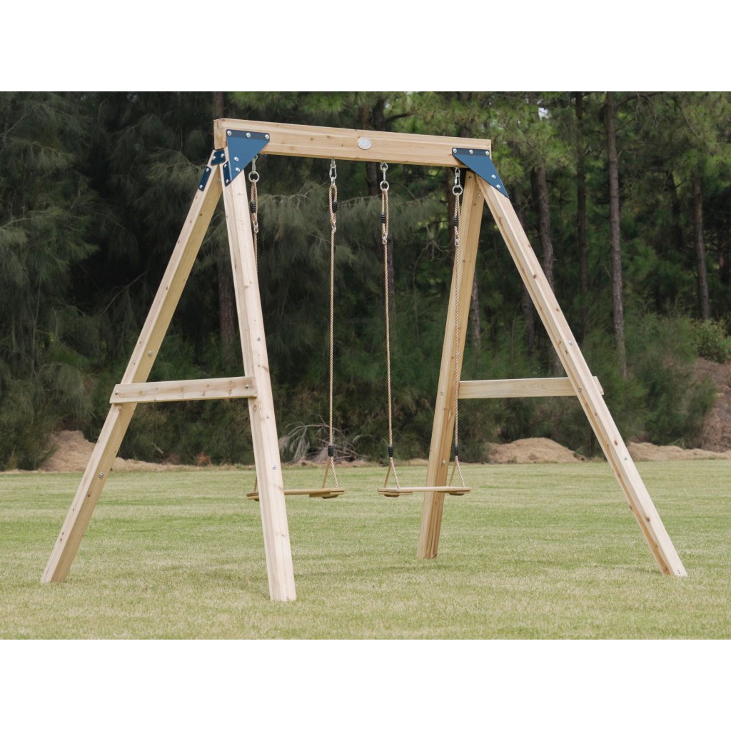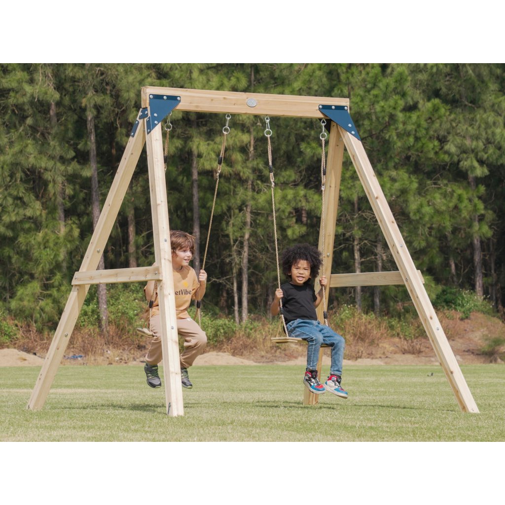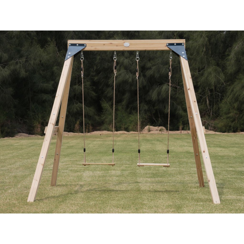 Dvojitá dřevěná houpačka Yuna je ideální volbou pro všechny zahrady, kde chtějí rodiče dětem dopřát bezpečnou a zábavnou venkovní aktivitu. Tato houpačková sestava nabízí dvě pohodlné houpačky, která umožňují houpání dvou dětí současně. Houpačka podporuje rozvoj rovnováhy, koordinace, síly a obratnosti, a zároveň poskytuje hodiny zábavy na čerstvém vzduchu.