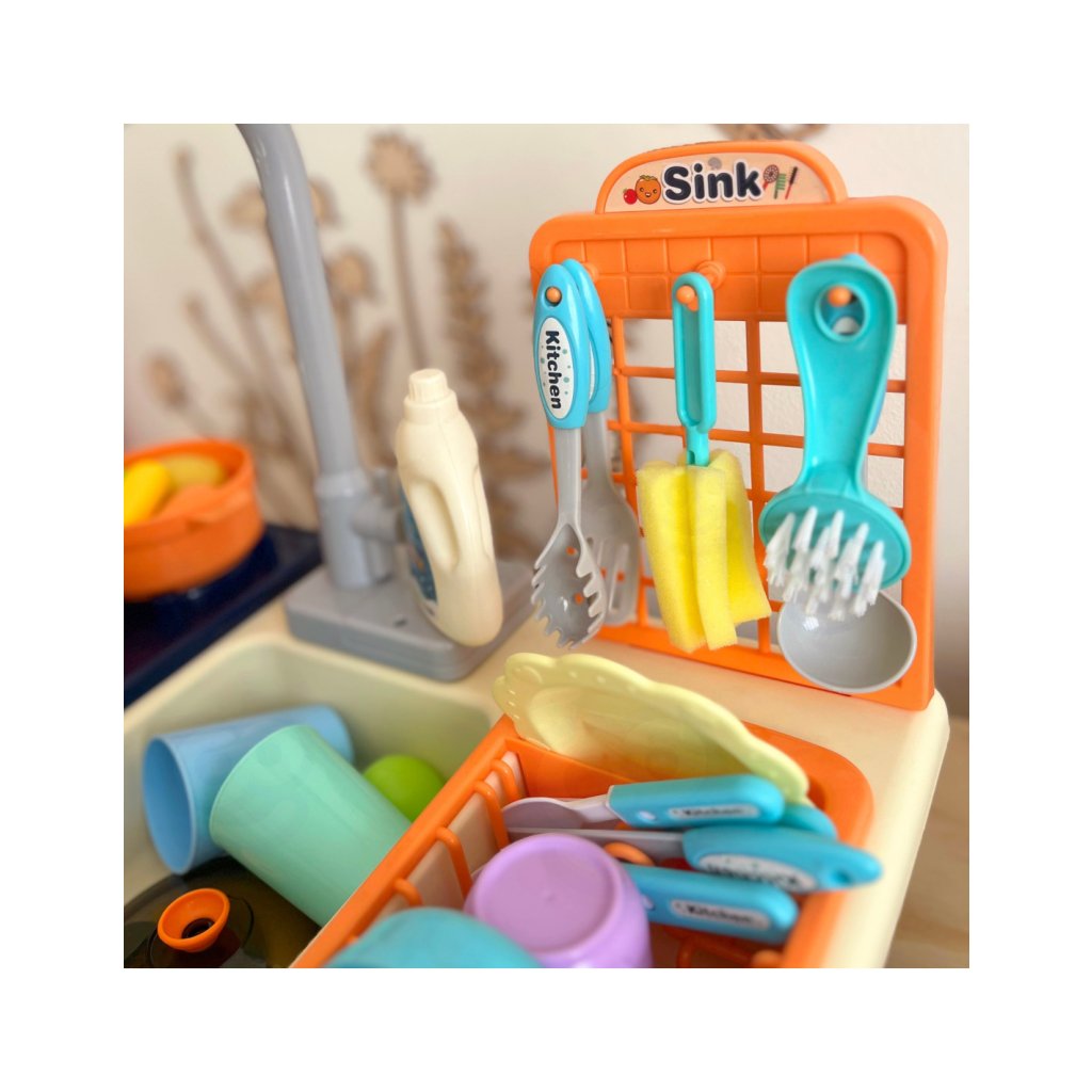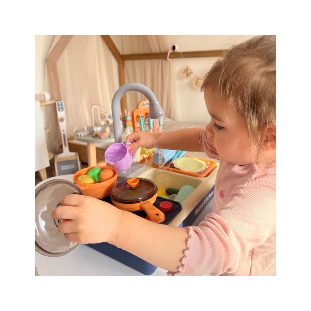 Dětský kuchyňský set s příslušenstvím je realistická a interaktivní hračka, která umožňuje dětem napodobovat každodenní činnosti v kuchyni a učit se přirozeně formou hry. Díky promyšlenému designu si děti mohou vyzkoušet mytí nádobí i „vaření“ stejně jako dospělí, což podporuje jejich představivost, samostatnost a vztah k běžným domácím aktivitám.