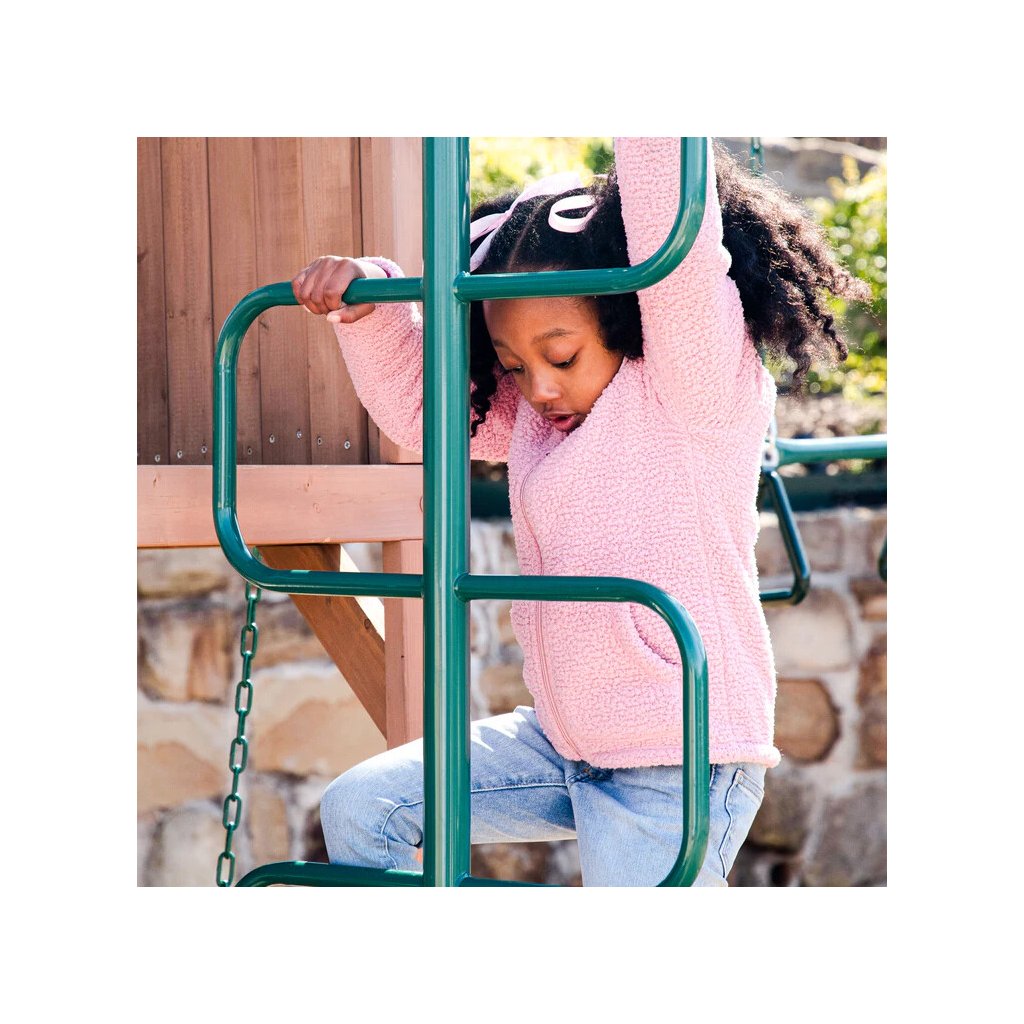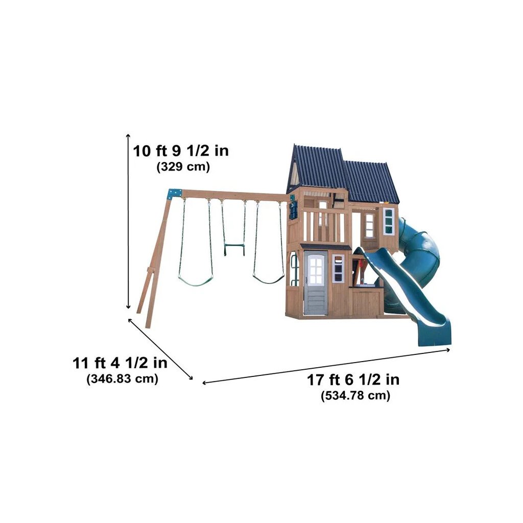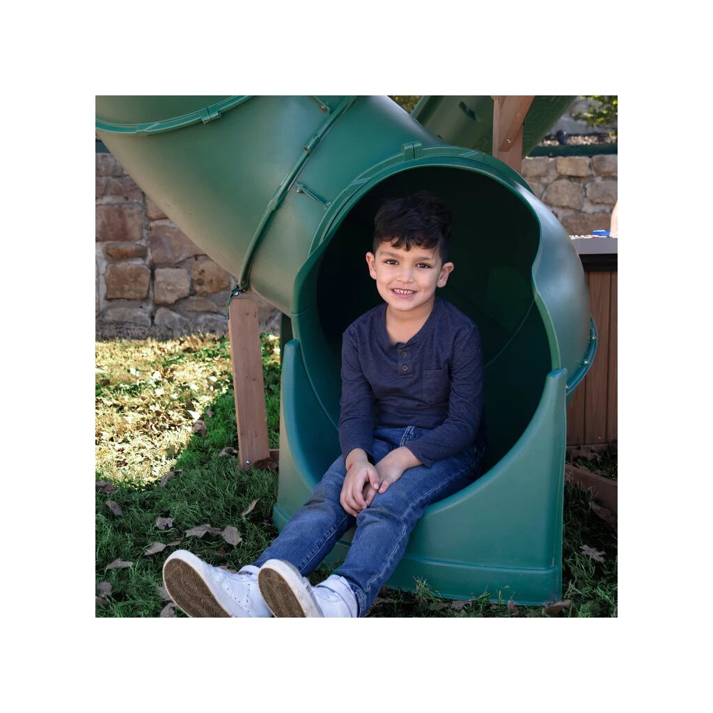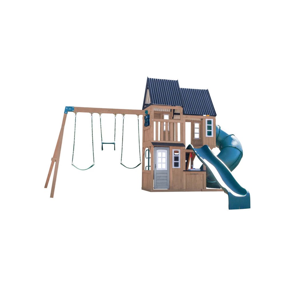 Dětské hřiště Acadia Manor s turbo tobogánem a skluzavkou je prémiová víceúrovňová herní sestava vyrobená z luxusního cedrového dřeva, která kombinuje aktivní pohyb s kreativní a tematickou hrou. Díky nadčasovému designu a kvalitnímu zpracování se stane přirozenou dominantou každé zahrady.