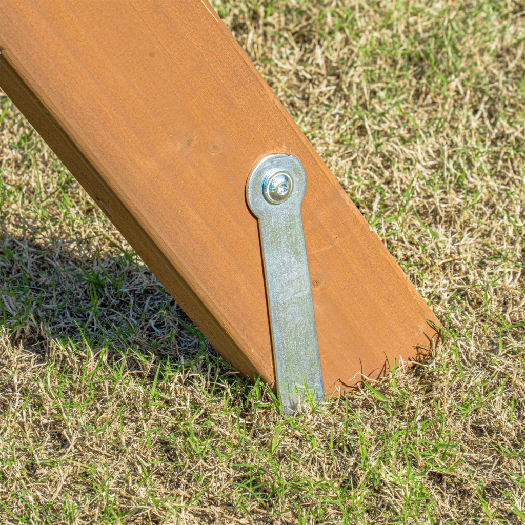 - Sestavu lze umístit na trávu, písek, kačírek či mulčovací kůru, nikdy hřiště neinstalujte na tvrdé podloží, jako je asfalt či beton.
