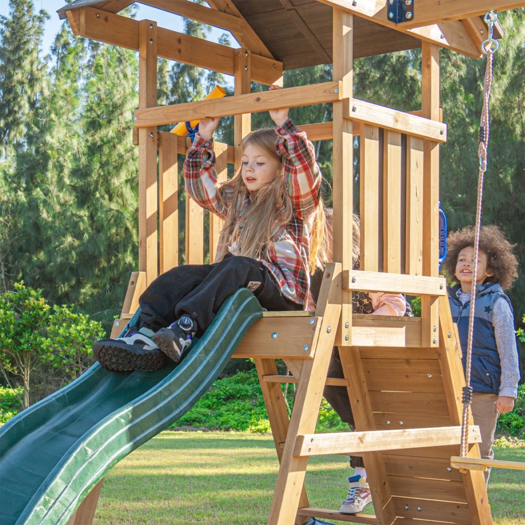 Skluzavka v délce 175 cm poskytne dětem nezapomenutelný zážitek z jízdy. Horní část věže má dost prostoru, který mohou děti využít prostor k zábavné hře. Ve spodní části věže je prostor pro pískoviště.