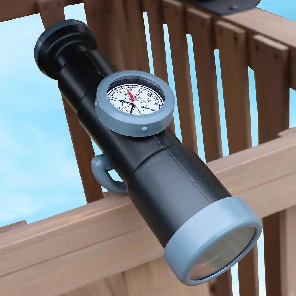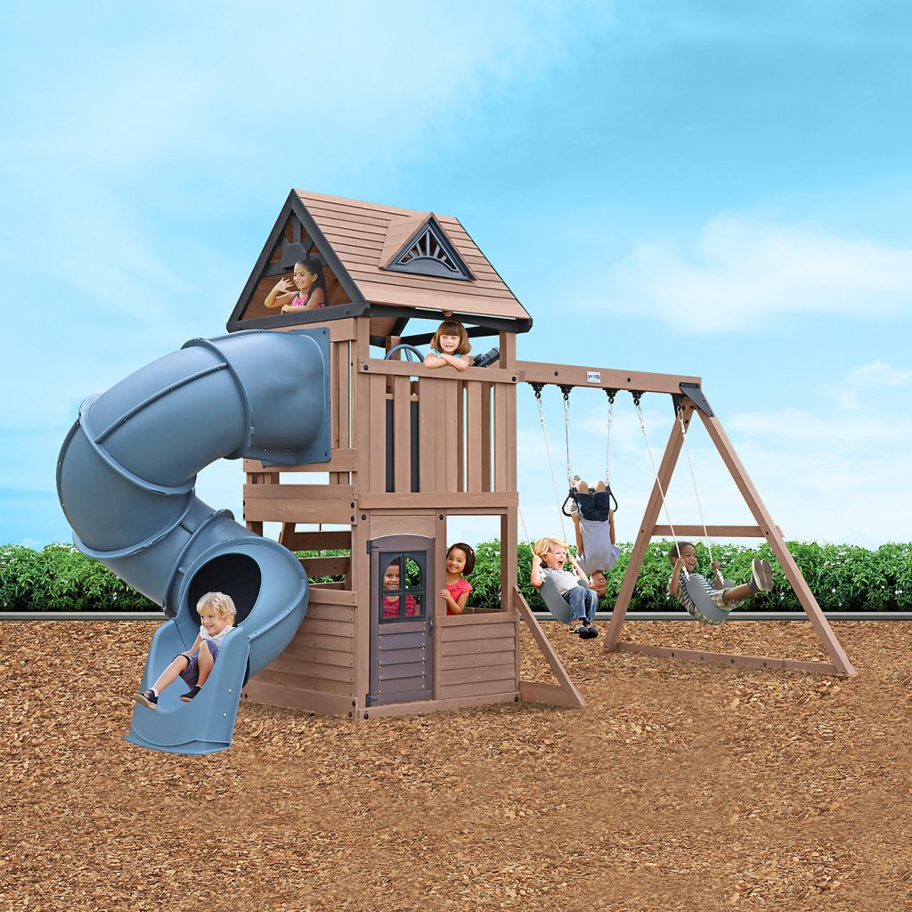 Sestava je vyrobena z kvalitního certifikovaného dřeva a designově kombinuje turbo tobogán a masivní houpačkový modul se dvěma závěsnými houpačkami a hrazdou Monkey Bar, která podporuje sílu a koordinaci dětí při hře.