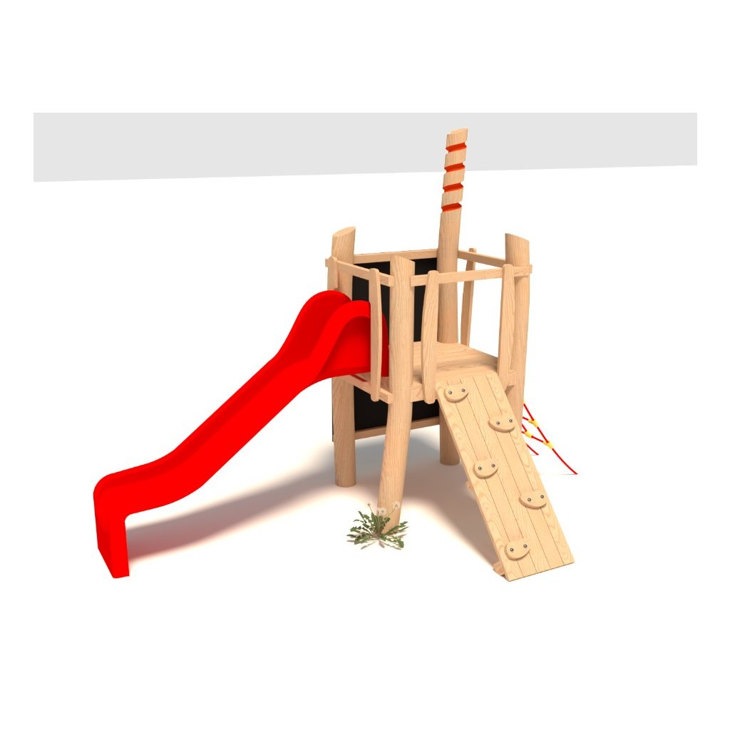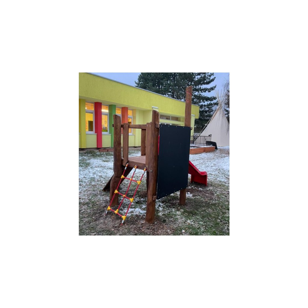 Krásná masivní herní sestava se skluzavkou - Isa je vyrobená z kvalitního a odolného akátového (dubového) dřeva, které je natřené lazurou (odstín dle přání zákazníka, případně může dřevo zůstat bez ošetření). Sestava je z tvrdého dřeva má dlouhou životnost bez větších nároků na údržbu.. Herní sestava je složena z těchto částí - věže bez střechy, která je zabetonována pevně do terénu. Vstup na plošinu je možný po šikmé lezecí stěně s chyty nebo po šikmé šplhací lanové síti. Sít je vyrobená z kvalitních lan s ocelovou výztuží tzv. lano Herkules (má dlouhou životnost a ja i velmi odolné proti řádění vandalů). Na boku sestavy je umístěna velká tabule na malování, vyrobená z voděodolné překližky upravené nátěrem tabulovou barvou. Součástí dodávky je i odolná laminátová skluzavka. Tato herní sestava je pro děti velmi atraktivní a přitom je to ekonomické řešení kvalitní akátové sestavy se skluzavkou.