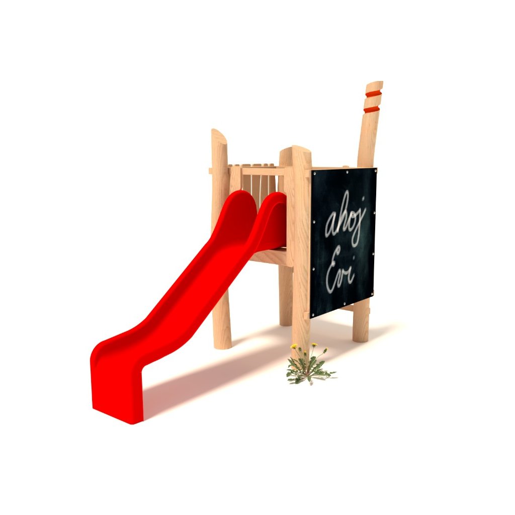 Krásná masivní herní sestava se skluzavkou - Lisa je vyrobená z kvalitního a odolného akátového (dubového) dřeva, které je natřené lazurou (odstín dle přání zákazníka, případně může dřevo zůstat bez ošetření). Sestava je z tvrdého dřeva má dlouhou životnost bez větších nároků na údržbu.. Herní sestava je složena z těchto částí - věže bez střechy, která je zabetonována pevně do terénu. Vstup na plošinu je možný po žebříku s dřevěnými stupni. Na boku sestavy je umístěna velká tabule na malování, vyrobená z voděodolné překližky upravené nátěrem tabulovou barvou. Součástí dodávky je i odolná laminátová skluzavka. Tato herní sestava je pro děti velmi atraktivní a přitom je to ekonomické řešení kvalitní akátové sestavy se skluzavkou.