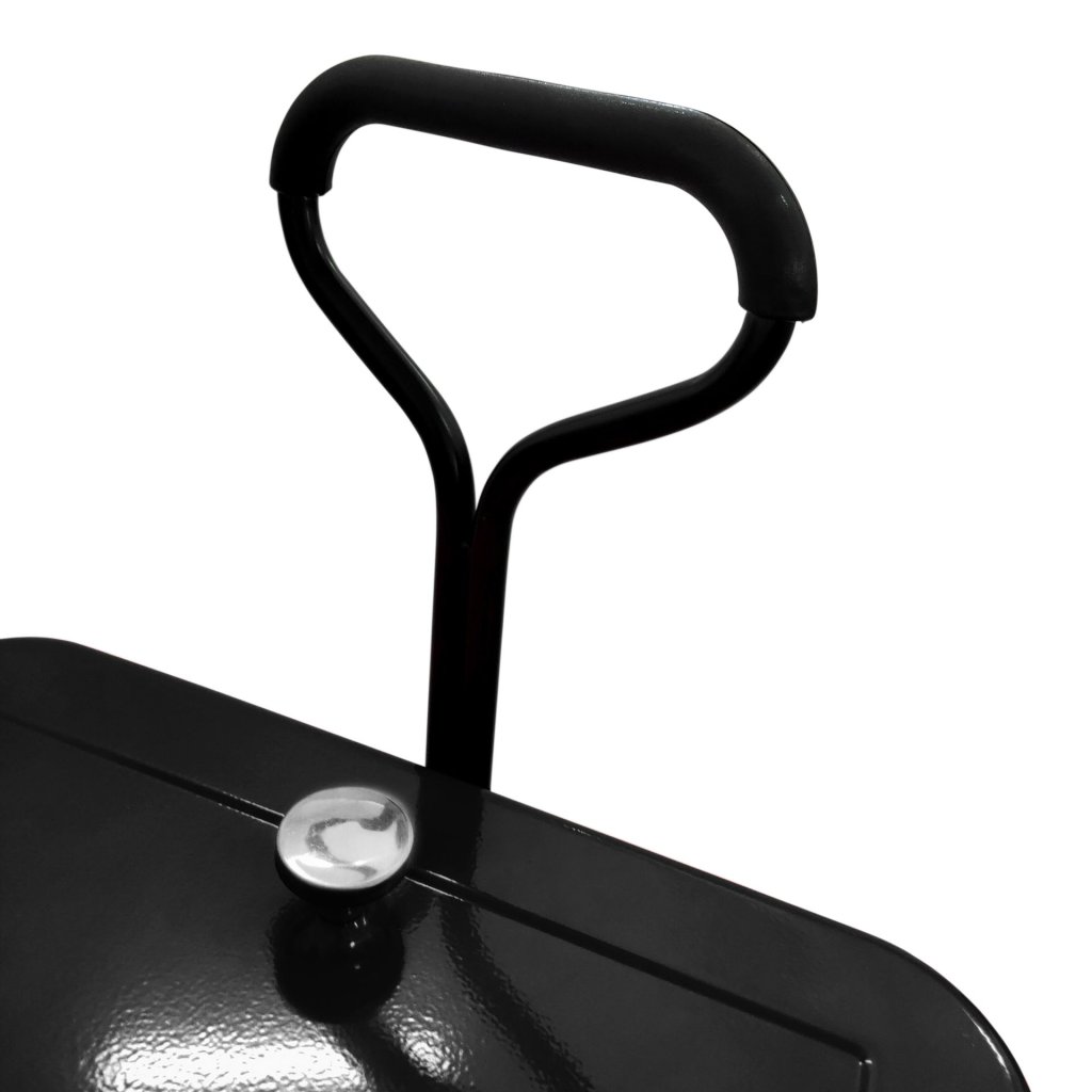 Vozík má pevnou kovovou konstrukci s odolnou povrchovou úpravou, která zajišťuje dlouhou životnost a stabilitu i při plném zatížení. Široká a odolná kola umožňují snadnou manipulaci nejen na zpevněných cestách, ale i na trávě, štěrku nebo písku. Díky dlouhému madlu se vozík velmi dobře řídí a pohodlně táhne.