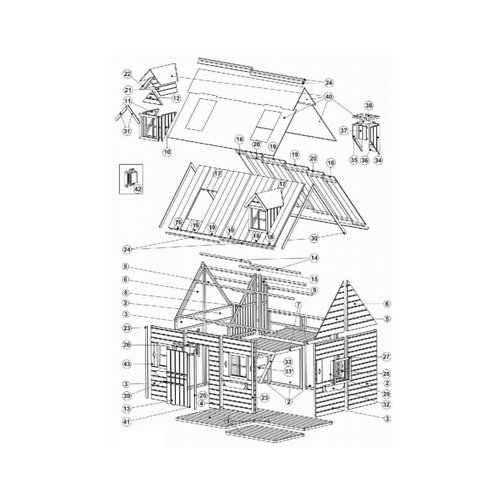 Domeček je vyroben z kvalitního, smrkového dřeva, v provedení čisté dřevo. Síla stěn je 12 mm.