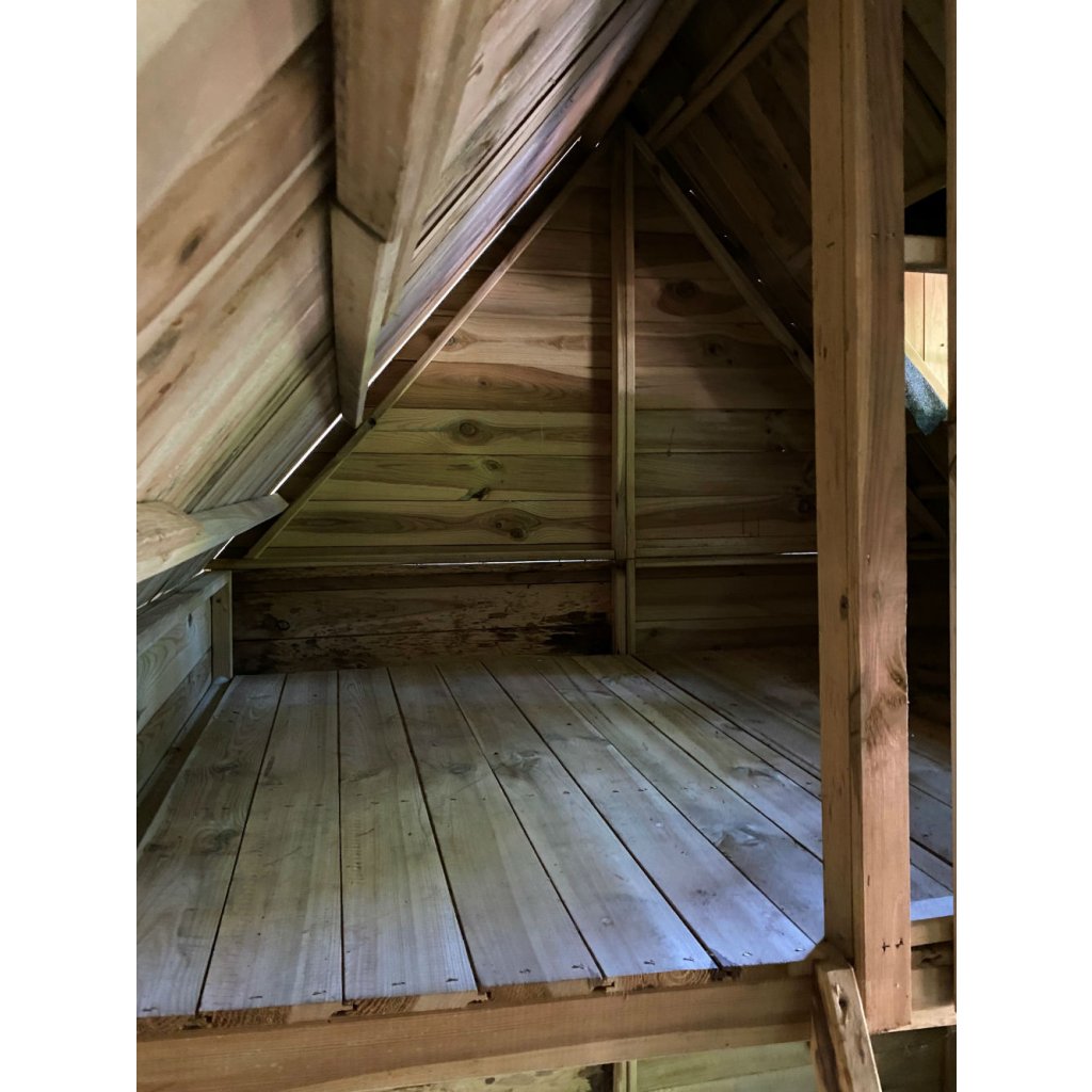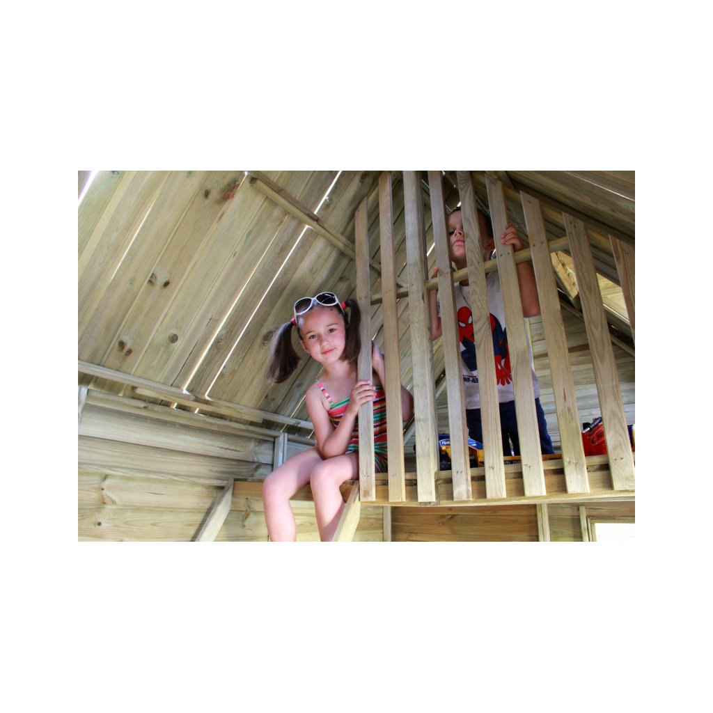 Domek poskytuje druhé patro o rozměru 100 x 150 x 110 cm, které může sloužit na spaní.