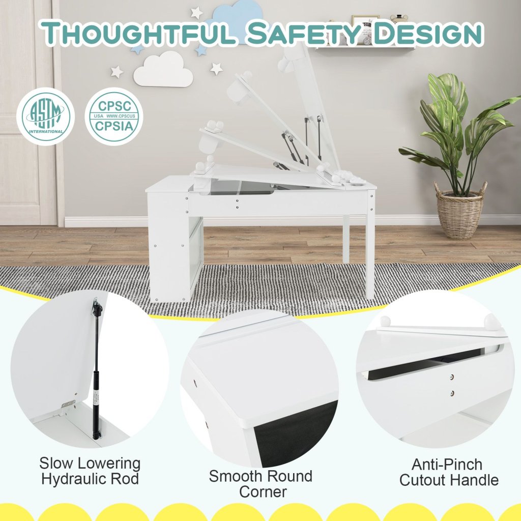 Tento moderní dětský Montessori stůl 2v1 je ideální volbou pro každého malého umělce, stavitele nebo objevitele. Multifunkční design v sobě spojuje pracovní stůl, kreslící tabuli, úložný prostor a učební zónu – vše v krásném bílém provedení, které ladí s každým interiérem.