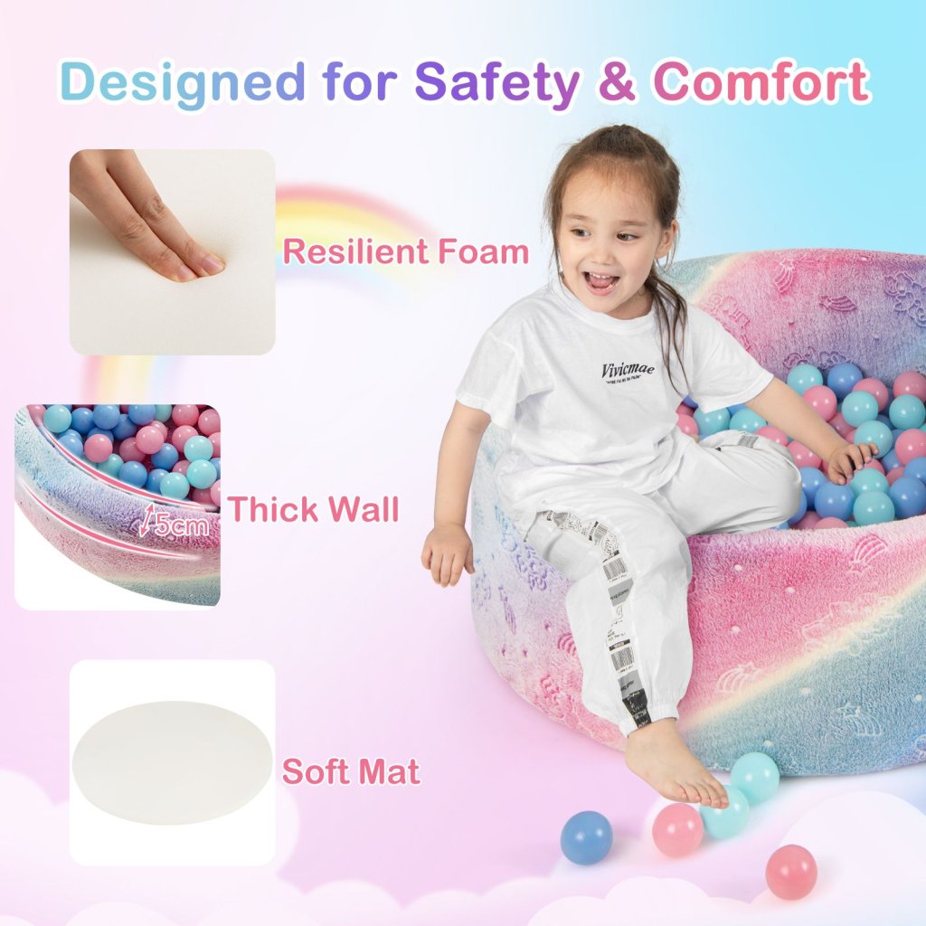 Tento fluorescenční bazének s barevnými kuličkami promění pokoj vašeho dítěte v kouzelné místo plné smíchu a dobrodružství. Bazének je vyplněn měkkou pěnou, která zaručuje bezpečí a pohodlí při každé chvíli hraní, a jeho povrch je potištěn vzory, které ve tmě jemně září – ideální pro noční dobrodružství.