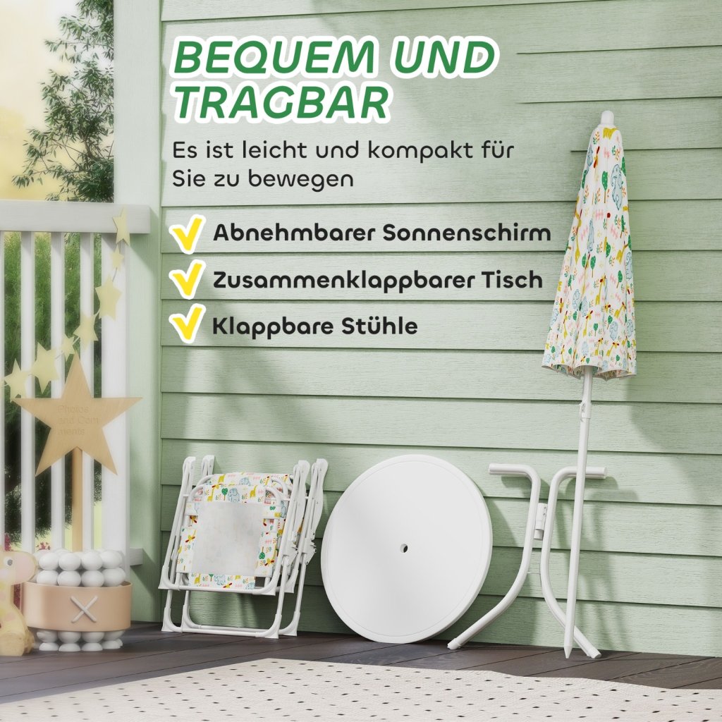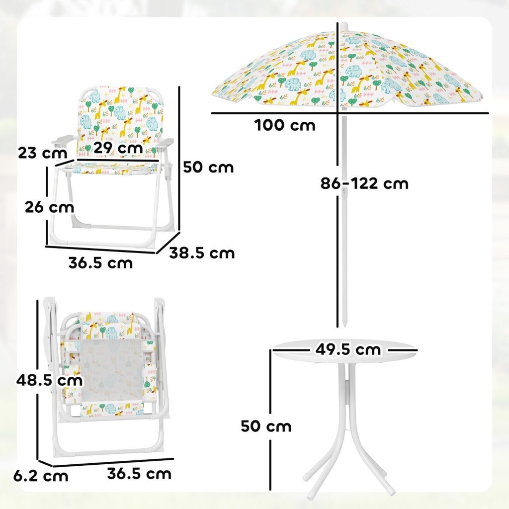 Součástí jsou skládací křesla, stoleček a slunečník, díky stínění budete chráněni před sluncem nebo nepřízni počasí.