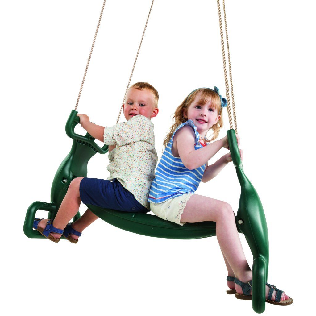 Pak je nadchne závěsná houpačka určená pro bezpečné houpaní dvou dětí najednou. Dodávka obsahuje: plastový dvousedák, lana, návod. Pro bezpečnou instalaci doporučujeme dokoupit kladky. Zelené provedení.