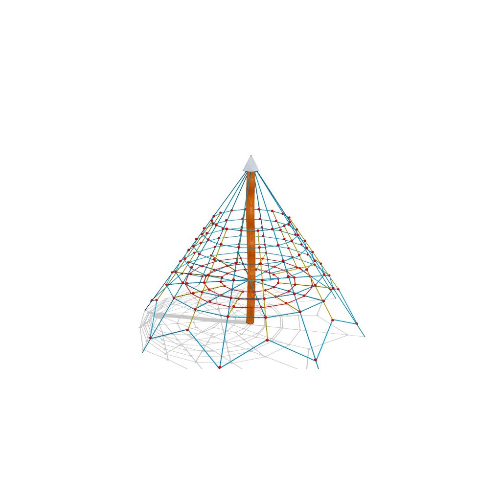 Lanová šplhací Pyramida z akátu Kuželka umožní dětem šplhání po lanech až do výšky 3,5 m a hru na veřejných dětských hřištích. Použité materiály jsou odolné a kvalitní, pyramida dobře odolá povětrnostním vlivům i vandalům. Doporučujeme ji umístit na veřejná dětská hřiště i do zahrad základních škol. Své uplatnění najde i u komerčních objektů, jako jsou hotely, restaurace a pod.