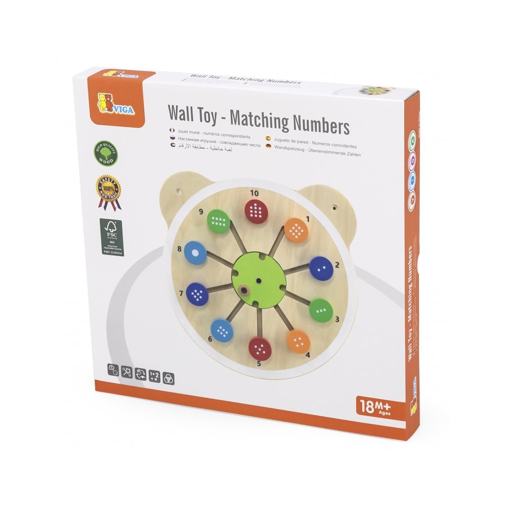 Tabule s kulatými bloky se správným počtem teček, které odpovídají příslušnému číslu na tabuli.