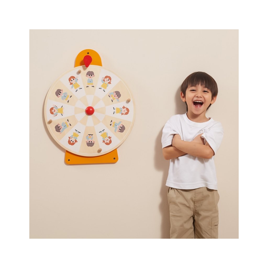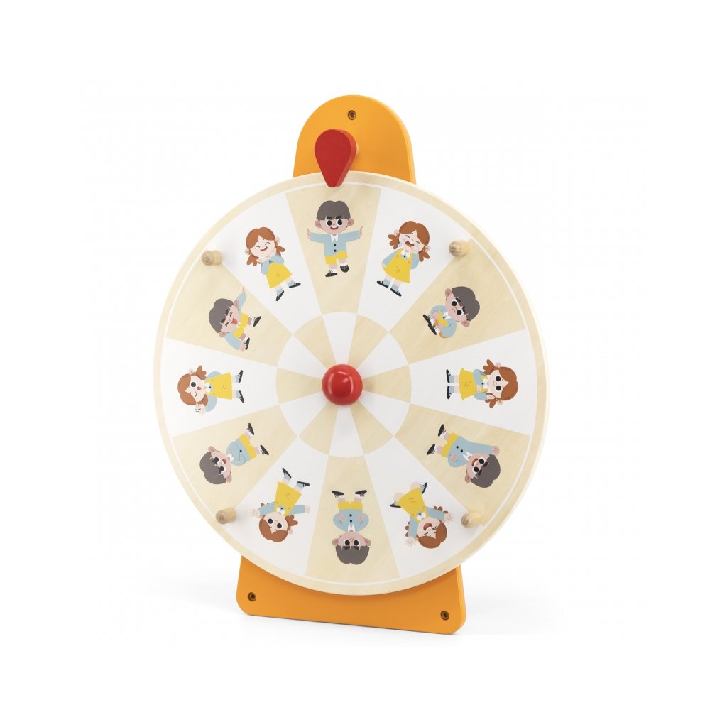 Stačí otočit kolečkem a šipka ukáže jeden z dvanácti výrazů obličeje – dítě může danou emoci napodobit, pojmenovat nebo popsat, co ji způsobuje. Hravým způsobem se tak učí chápat své vlastní pocity i pocity ostatních.