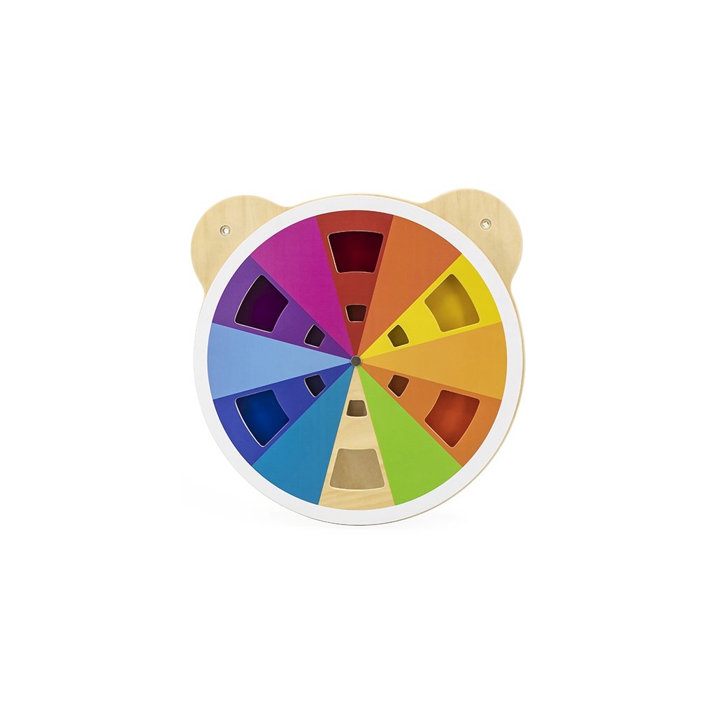 Tato interaktivní vzdělávací hračka umožňuje dětem zábavnou formou zkoumat, jak vznikají nové barvy jejich mícháním. Otáčející se akrylový kotouč překrývá barevné pozadí, a tak si malí objevitelé mohou sami „namíchat“ různé odstíny a poznat základní principy barevného spektra.