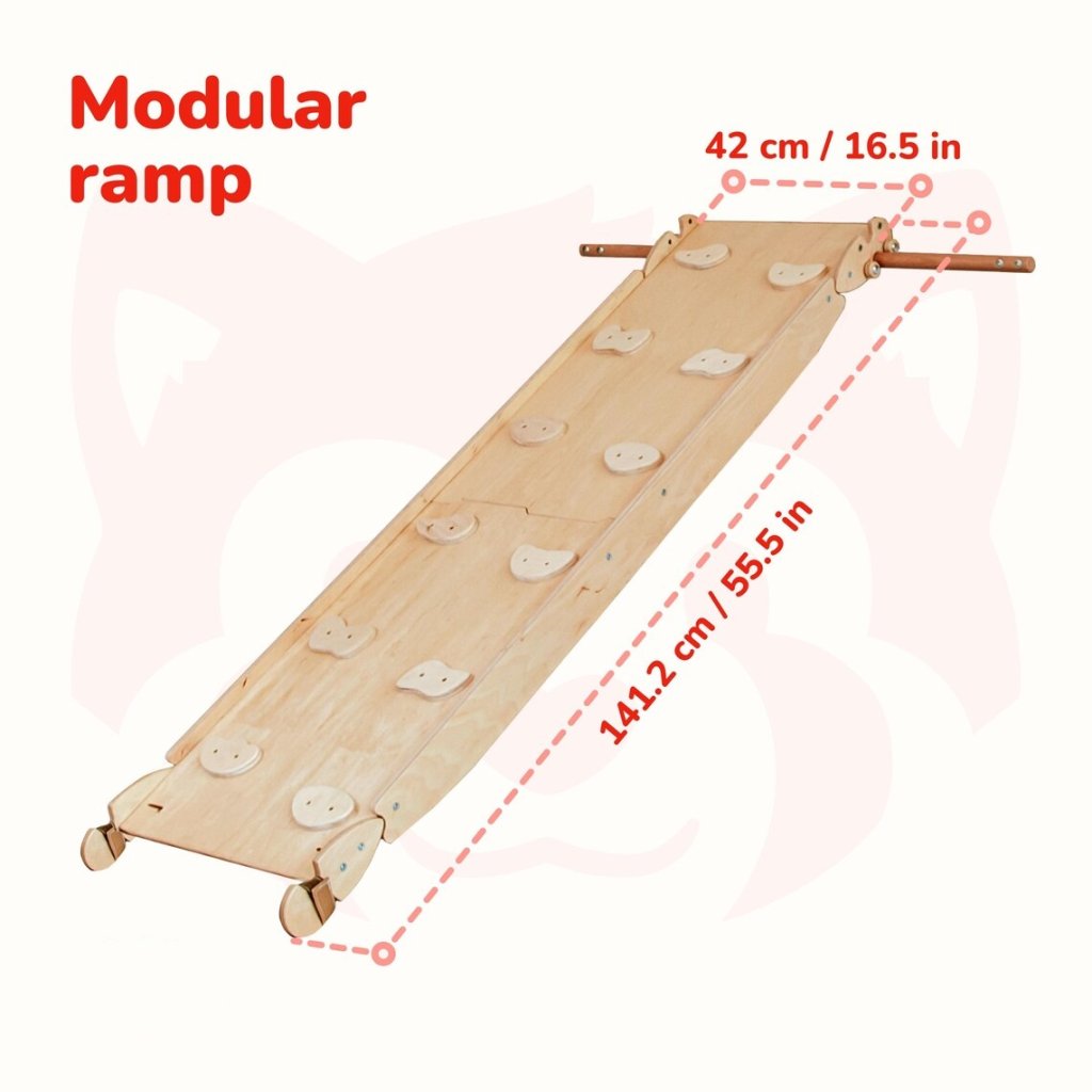 Děti si mohou vylézt na herní věž pomocí žebřin z dřevěných příček, které mají po stranách madla pro bezpečnější výlez vašich dětí, z protihlehlé strany jsou dřevěné příčky s lanovou stěnou, kde děti mohou také vylézt na věž a nebo využít oboustrannou lezecí stěnu s dřevěnými šplhacími body, kterou po otočení, můžete využít, i jako skluzavku, kterou bezpečně připevníte k herní věži pomocí pásků. K věži je připojen ručkovací modul z dřevěných příček, na kterých děti mohou trénovat svoji fyzickou zdatnost a z vnitřní části mohou ručkovat až k herní věži. Interierová sestava je vybavena závěsnými prvky, z kterých budou aktivnější děti nadšeni. Na ručkovací modul jim můžete zavěsit například gymnastické kruhy, houpací disk, 7 příčkový žebřík nebo závěsné lano s dřevěnými stupni, pro bezpečný dopad umístíte dětem pod ručkovací modul vyměkčenou matraci, všechny doplňky jsou součástí vybavení. Dětem můžete závěsné prvky měnit dle jejich oblíbenosti a sestavu zdokonalovat dle jejich fyzických schopností a každý den bude pro vaše děti zábavnější.