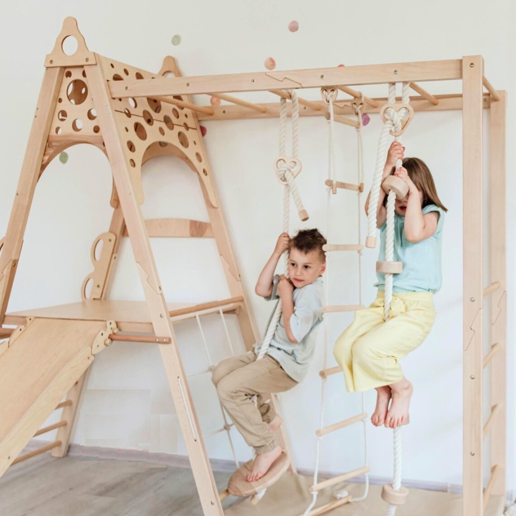 Montessori dětská herní sestava Circle je všestranné vnitřní interiérové hřiště navržené tak, aby zapojilo motoriku dětí, kontrolu rovnováhy, koordinaci pohybu a nekočnou fantazii v hraní. Díky své lákavé struktuře poskytuje různé možnosti lezení, šplhání, houpání a zdokonalení ve fyzické zdatnosti, díky herním prvkům, které jsou součástí sestavy.