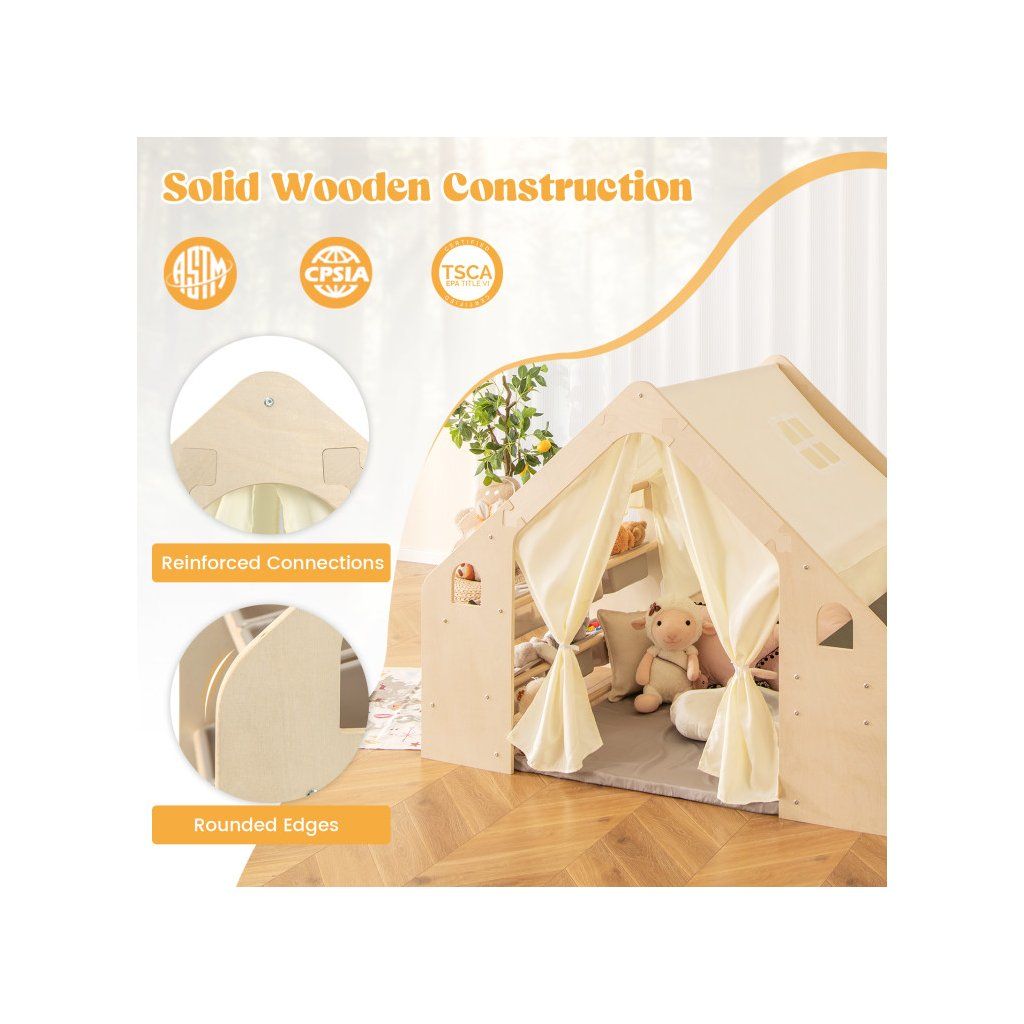 Montessori dětský dřevěný stan ve tvaru domečku 6v1