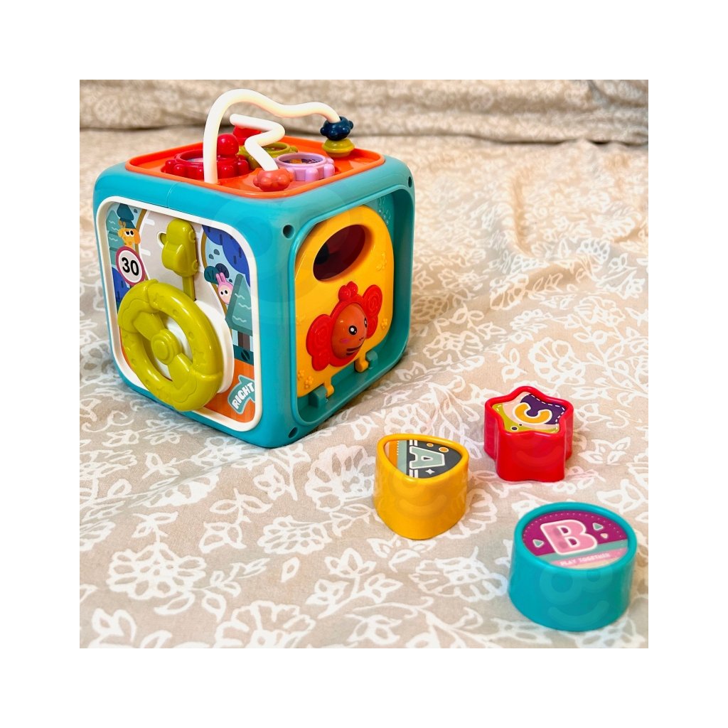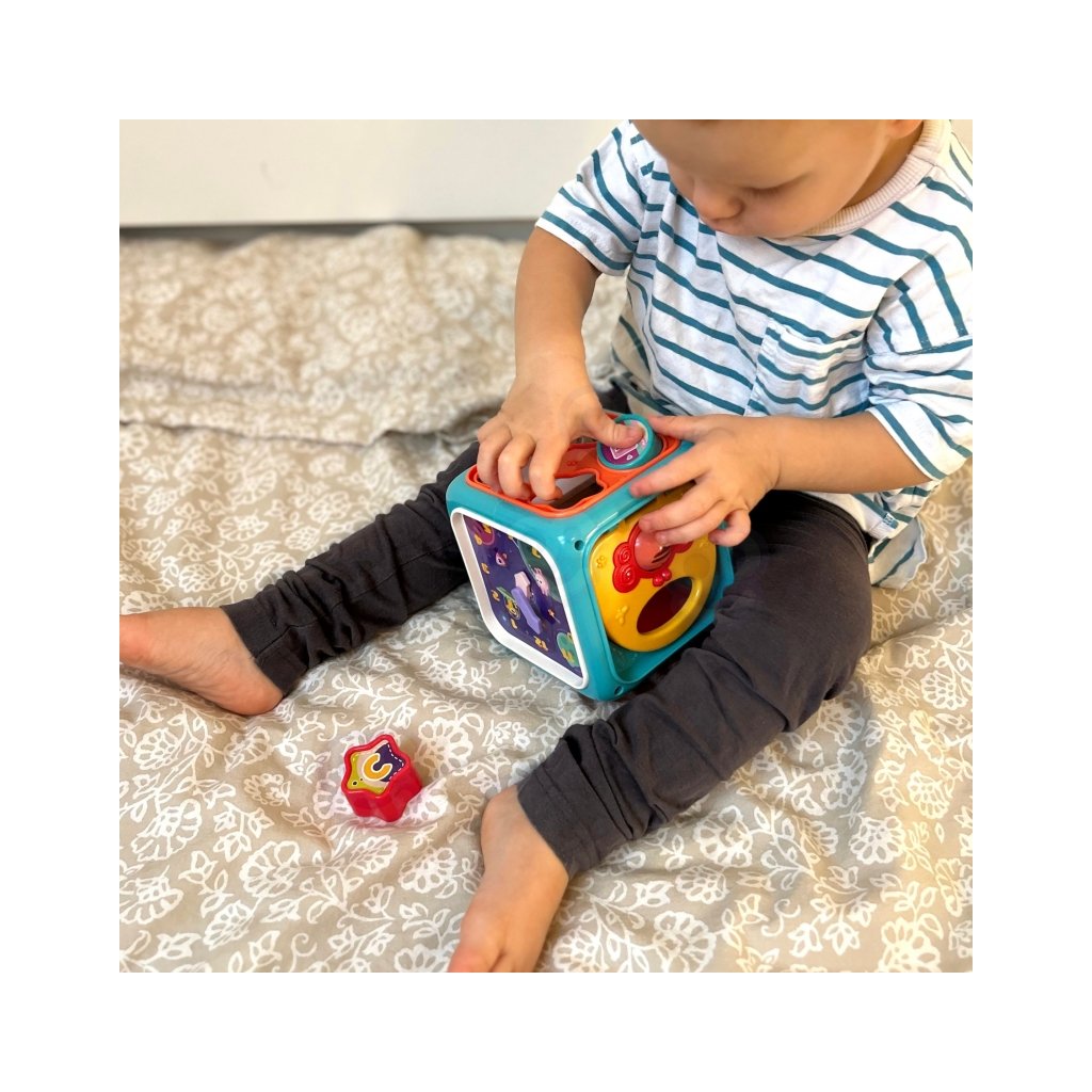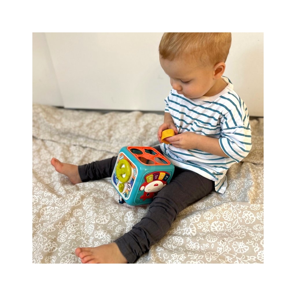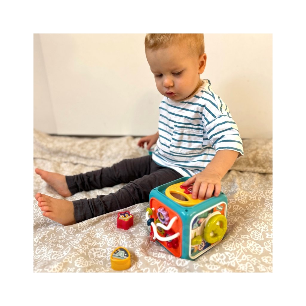 Kostka je kompaktní, lehká a ideální na doma i na cesty. Doporučeno pro děti od 12 měsíců. Perfektní dárek k prvním narozeninám nebo jako podnětná hračka pro každodenní učení hrou.
