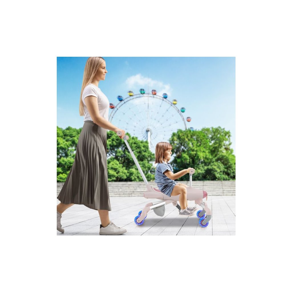 Díky inovativnímu designu 2 v 1 se přizpůsobuje vývojovým potřebám dítěte a umožňuje plynulý přechod mezi režimem tlačeným rodiči a režimem ovládaným batoletem.