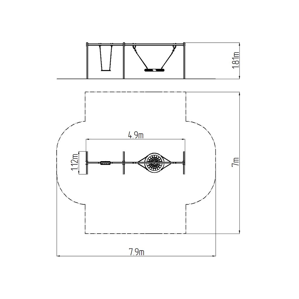 Řetězová houpačka celokovová sedák + hnízdo v.p. 1 m je pevná houpačka umožňující houpání více dětí ve věku od 2 do 15 let najednou. Velkou výhodou této houpačky je možnost výběru sedáku (pro nejmenší děti nebo běžného rovného sedáku). Uplatnění tato houpačka najde na dětských hřištích v obcích a městech, ale vhodně doplní i zahrady mateřských a základních škol. Kvalitní houpačka najde své uplatnění i u komerčních objektů - restaurací, hotelů, penzionů...Celokovové provedení je bezúdržbové a velmi dobře odolává vandalům.