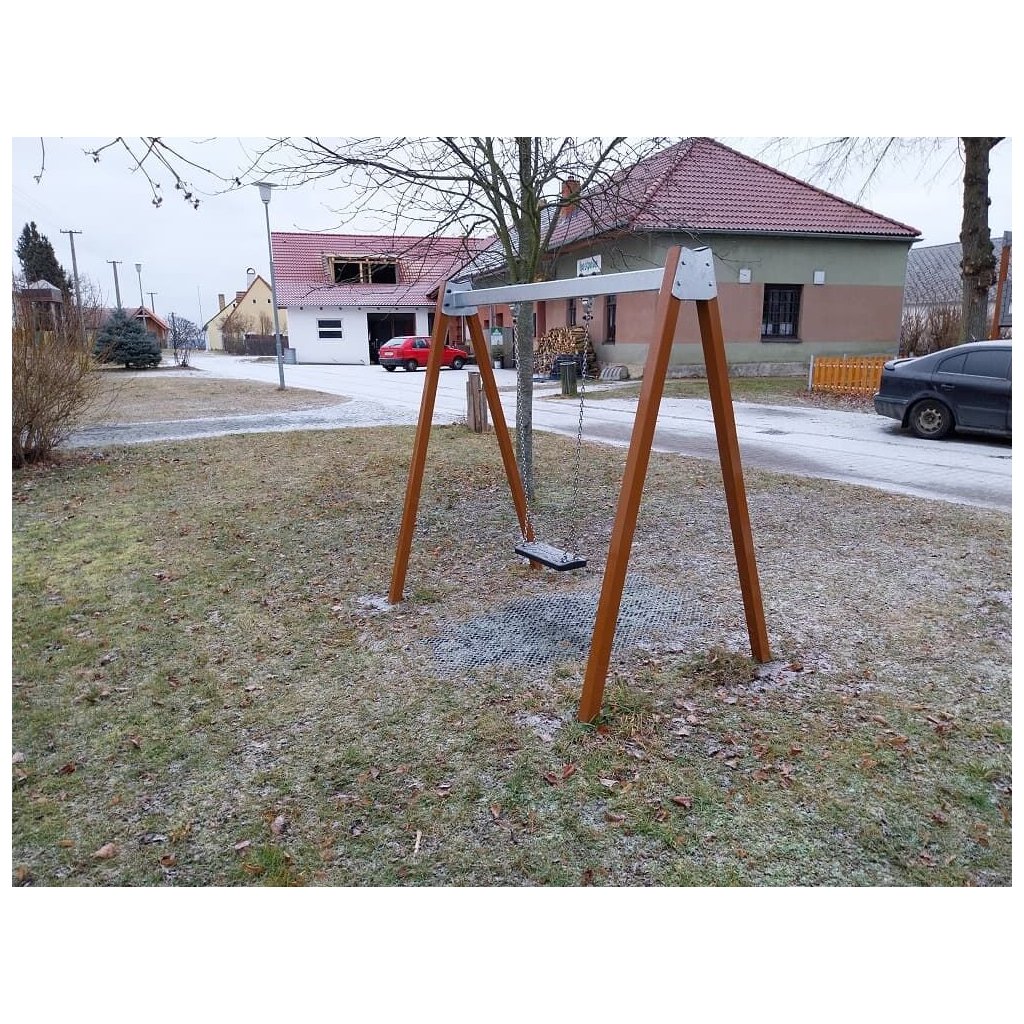 Výška pádu Řetězové jednohupačky celokovové je 1 m. Proto stačí jako dopadová plocha udržovaný trávník. Pokud hrozí vyšlapání trávníku je zde náš tip - jsou to pryžové zatravňovací desky Grass a Saf. Jejich instalace je jednoduchá pokládka na terén bez nutnosti zemních prací.