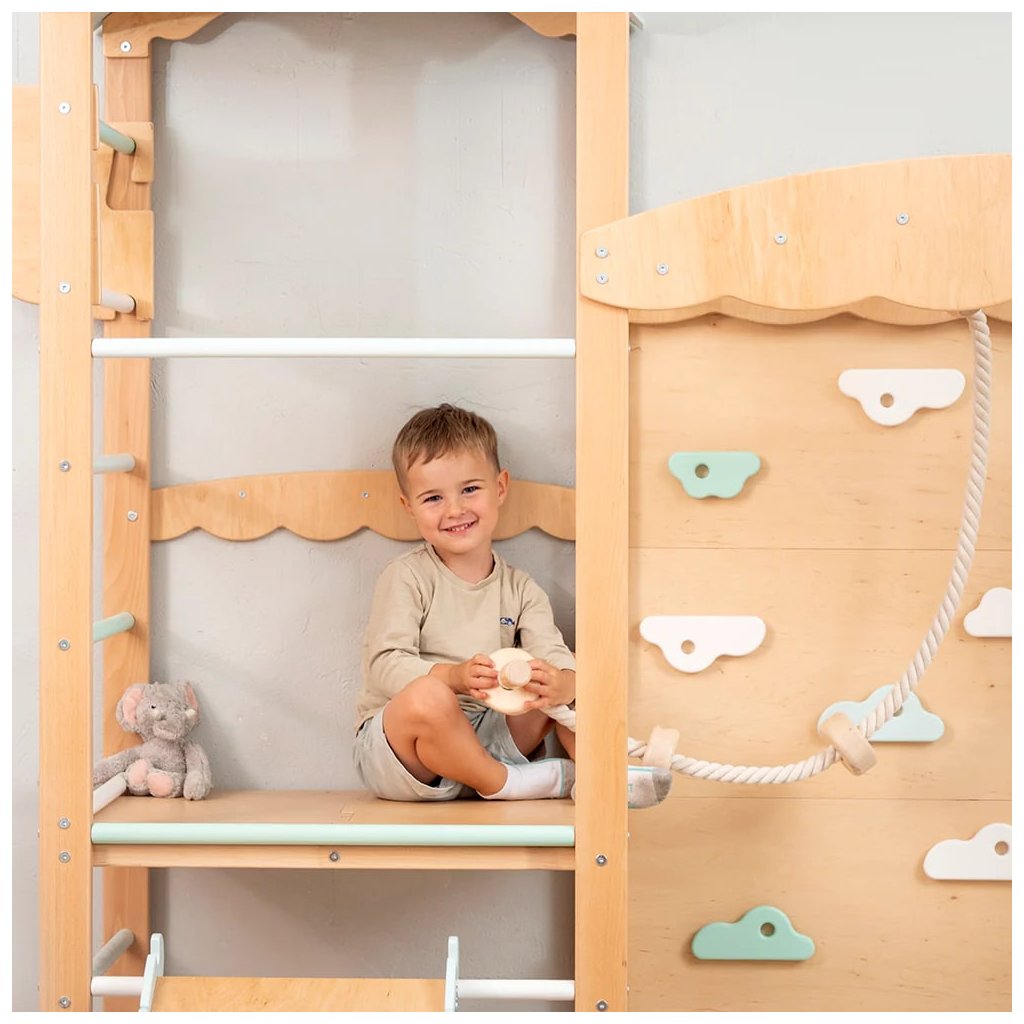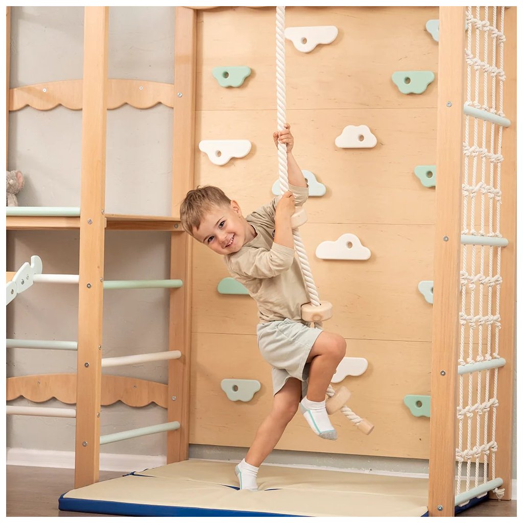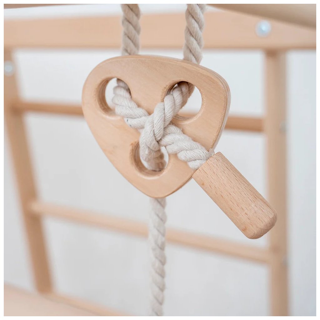 Lano se 4 kulatými stupínky je ideální gymnastický doplněk určený ke zlepšení lezení, podpoře motoriky a podpoře rozvoje koordinace a svalové síly. Je dokonale kompatibilní s montessori konstrukcemi a snadno se přichytí pomocí speciálního fixačního systému. Proces je rychlý a jednoduchý a zajišťuje minimální přerušení během hraní.