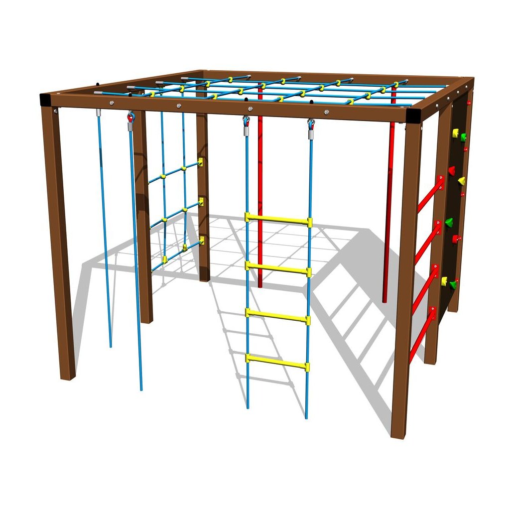 Nosná konstrukce šplhací sestavy - Kostka je vyrobena z konstrukční oceli (kovový profil 100 x 100 mm), která je proti korozi chráněna povrchovou úpravou zinkováním a vypalovanou barvou KOMAXIT, čímž se docílí velmi výrazného prodloužení životnosti herního prvku. Barvu konstrukce si může zákazník volit z těchto barev - stříbrné a hnědé. Konstrukce šplhací sestavy čtyřka jsou betonovány přímo do terénu. Veškeré další kovové prvky jsou také upravovány zinkováním a vypalovanou barvou KOMAXIT. Lana a sítě jsou vyrobeny z materiálu HERKULES (16 mm lana z polypropylenu s vnitřním ocelovým jádrem) a jsou spojována plastovými spoji. Lezecká stěna je vyrobena z vodovzdorné překližky určené pro venkovní prostředí. Horolezecké chyty jsou z křemičitého písku a epoxidové pryskyřice - to zaručuje dlouhou životnost, stálobarevnost i šetrný povrch pro kůži na rukou. Použitý spojovací materiál je pozinkovaný nebo nerezový.