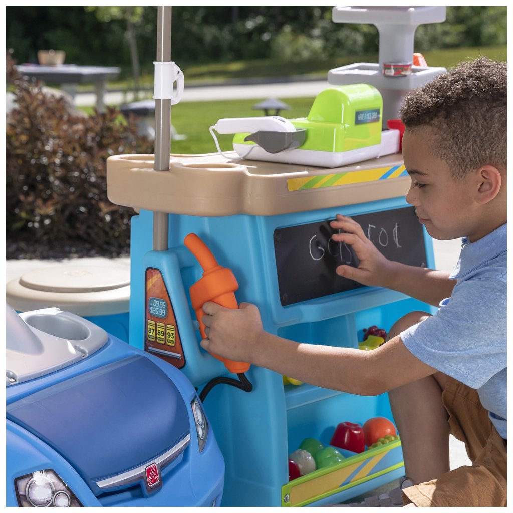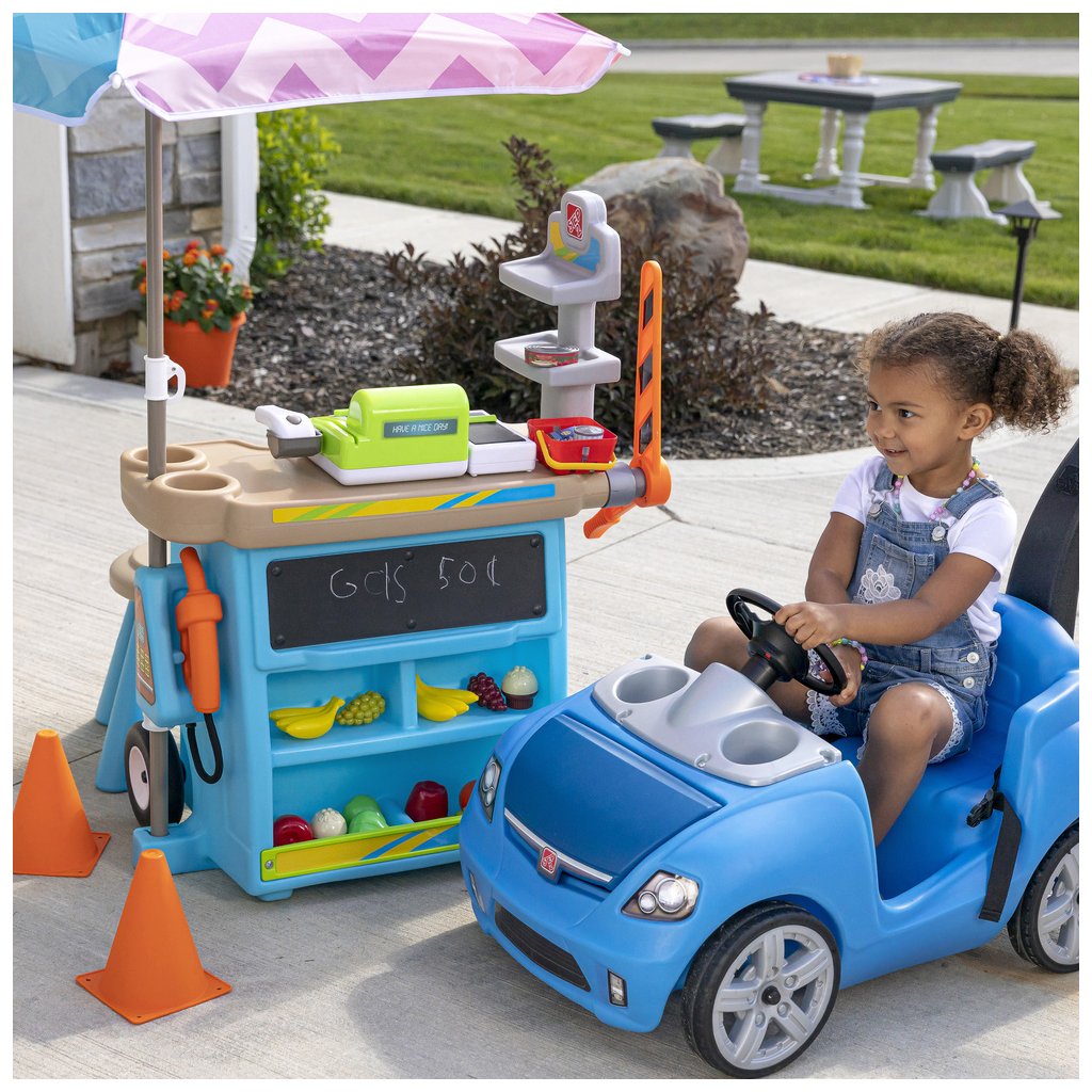 - součástí vybavení stánku jsou: židlička, slunečník, pokladna s čtečkou karet, papírové peníze a mince, kreditní karta, nákupní košík, závora, 2 kužely, jídlo