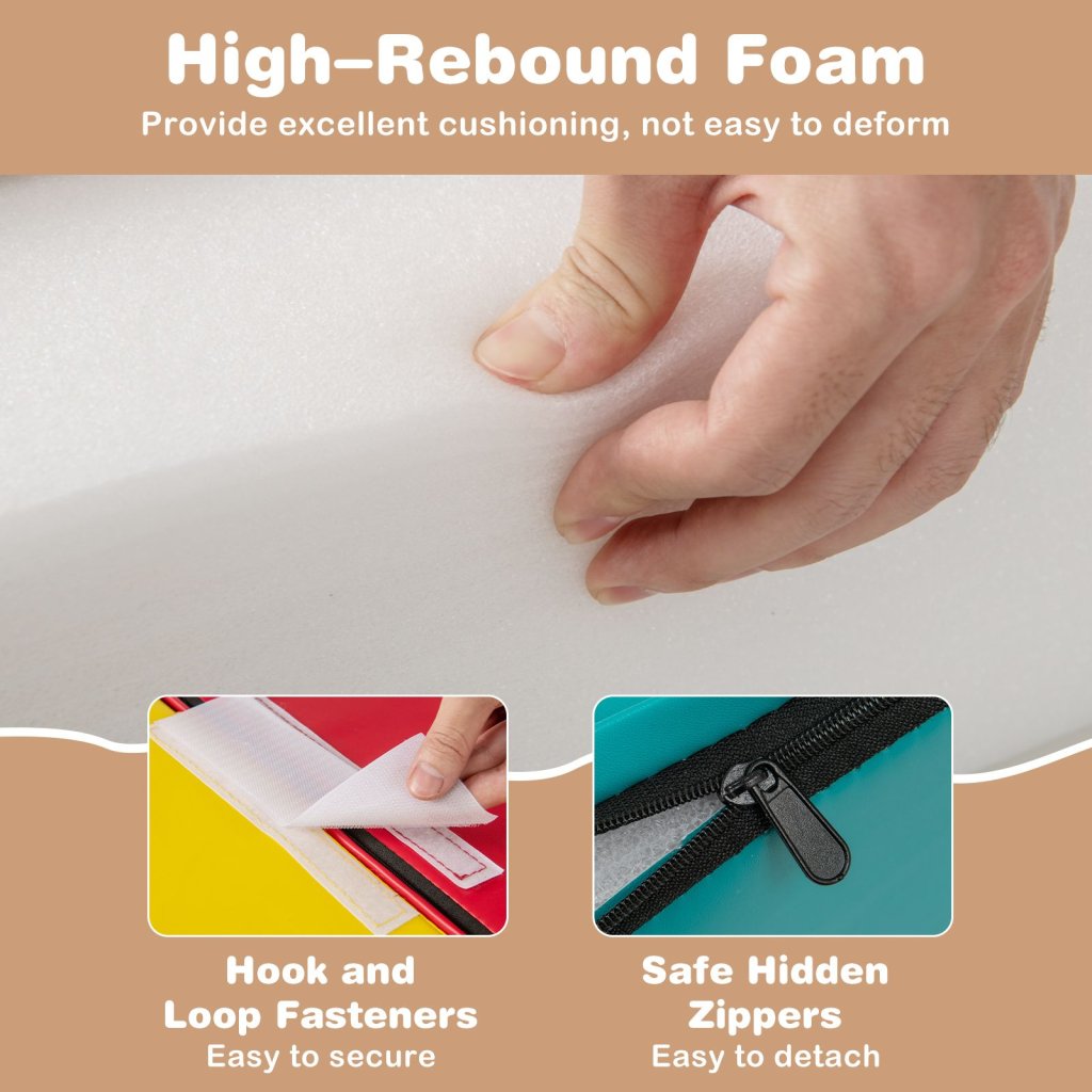 Celá sada bloků má hustou pěnovou strukturu, která je velmi silná a elastická. Naše sada hraček je lehká a stohovatelná, aniž by zabírala mnoho místa. Proto si tahle oblíbená kolekce pěnových bloků najde místečko v každém dětském pokojíčku. Je vhodná do školek, domácností, kde se děti zabaví a rodiče si odpočinou.