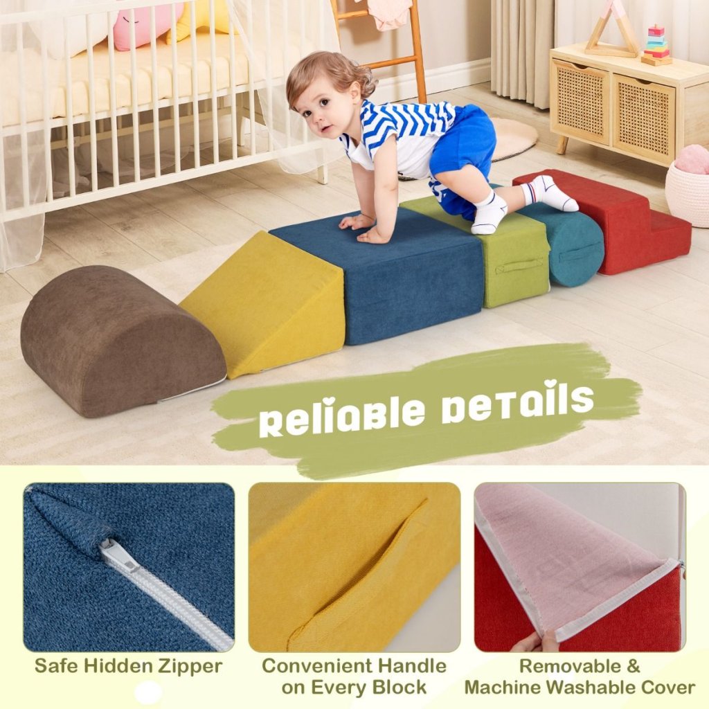Jsou použity vysoce kvalitní a bezpečné materiály: Jsou vyrobeny z vysoce kvalitní měkké pěny a potaženy materiálem příjemným na dotek, což zajišťuje bezpečnost a pohodlí při hře. Bloky se také snadno čistí díky odnímatelným krytům a praktickým rukojetím umožňují jejich přemisťování mezi místnostmi. Naše sada hraček je lehká a stohovatelná, aniž by zabírala mnoho místa. Proto si tahle oblíbená kolekce pěnových bloků najde místečko v každém dětském pokojíčku. Je vhodná do školek, domácností, kde se děti zabaví a rodiče si odpočinou.