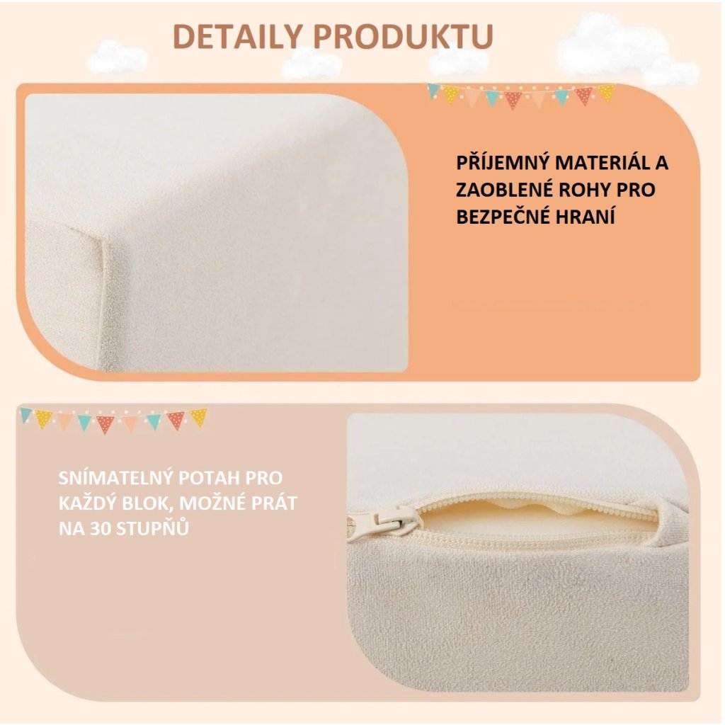 Snímatelné potahy, které lze prát v pračce, se také snadno čistí. A co je nejdůležitější, produkt nemá žádné ostré hrany ani tuhou strukturu, což zvyšuje bezpečnost.