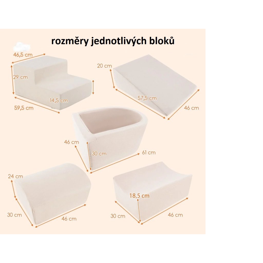 Hledáte pohodlnou lezeckou hračku pro vaše děti? Naše 5dílná sada lezeckých bloků je ideální volbou. Herní sada se skládá z 5 dílků, které mohou děti kombinovat a vytvářet tak různé tvary nebo struktury pro hodiny zábavy. Látkové potahy šetrné k pokožce a měkká houba vytvářejí bezpečné a pohodlné prostředí pro hraní dětí ve věku od 3 let.