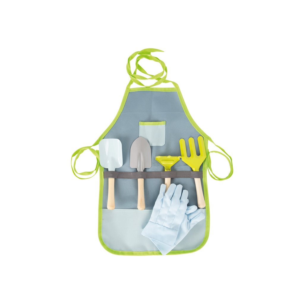 S touto praktickou sadou zahradních pomůcek budou mít děti vždy ten pravý nástroj po ruce! Sada se skládá ze zástěry pro děti s náprsními kapsami, zahradnických rukavic, čtyř malých zahradnických nástrojů (rýč, hrábě, lopata a vidle). Záhradní nářadí z robustního kovu s dřevěnými rukojeťmi vhodnými pro děti.